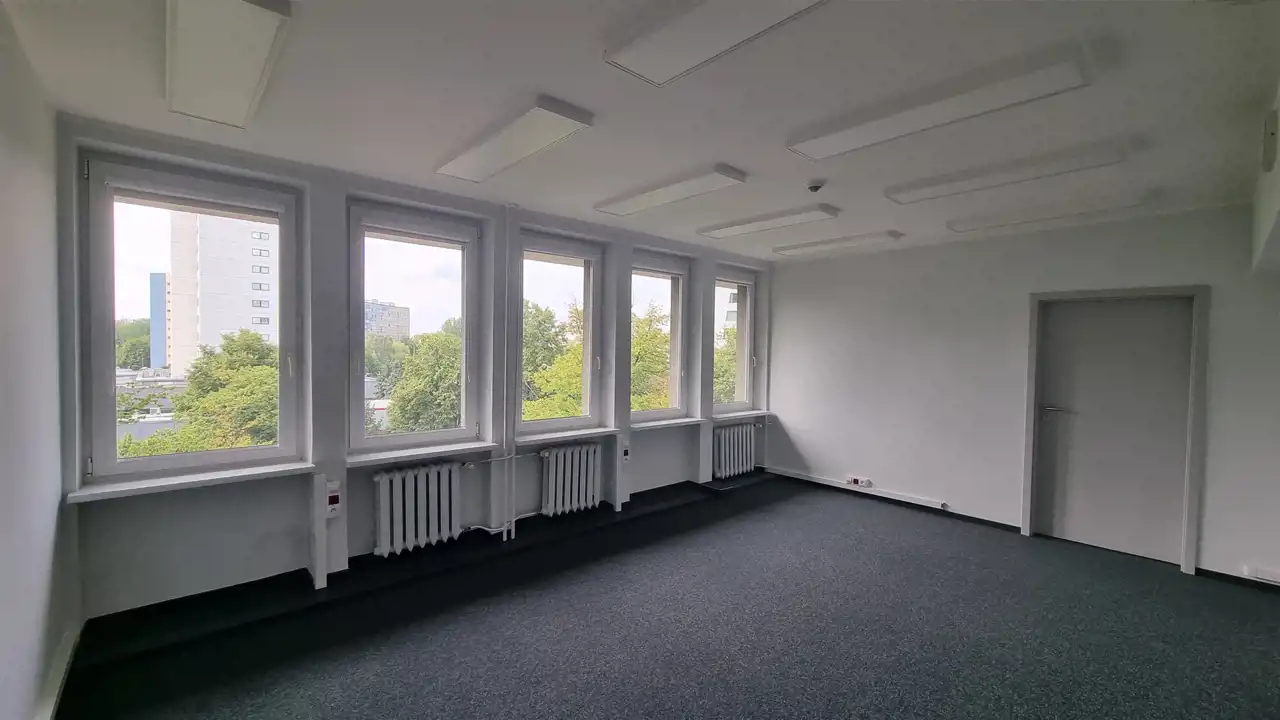 - Pomieszczenia biurowe wyłożone wykładziną dywanową