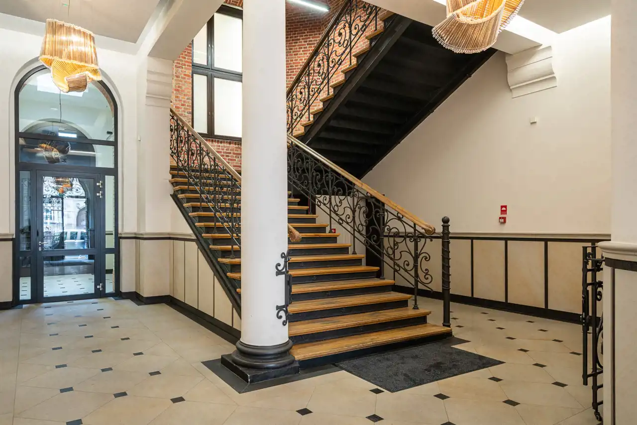 Budynek wyremontowany z wielką dbałością o detal, klimatyczne wnętrza biurowe, eleganckie klatki schodowe.