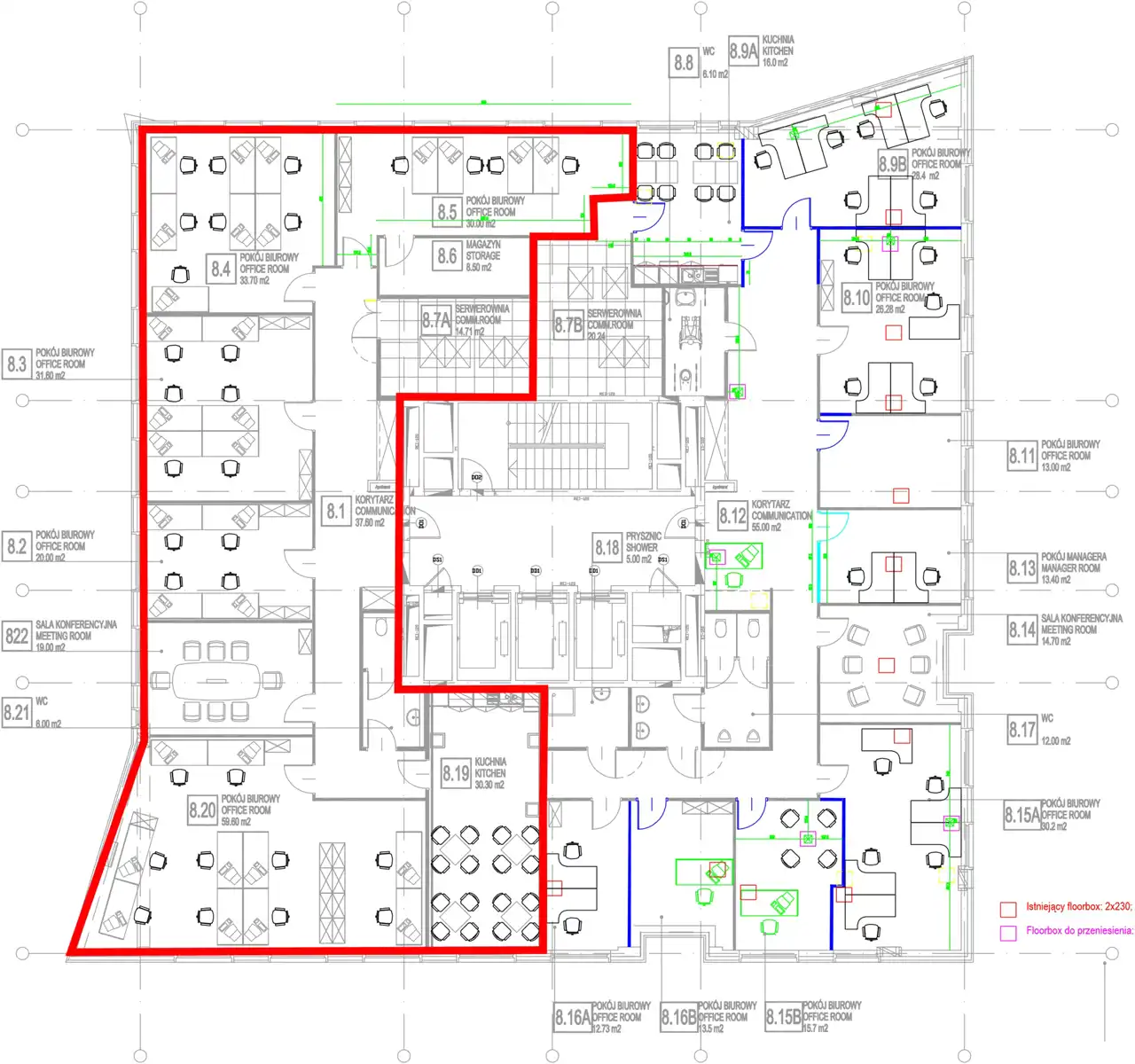 Do wynajęcia niezależny moduł o powierzchni 305m2 usytuowany na 8p składający się z sześciu gabinetów, kuchni, łazienki.