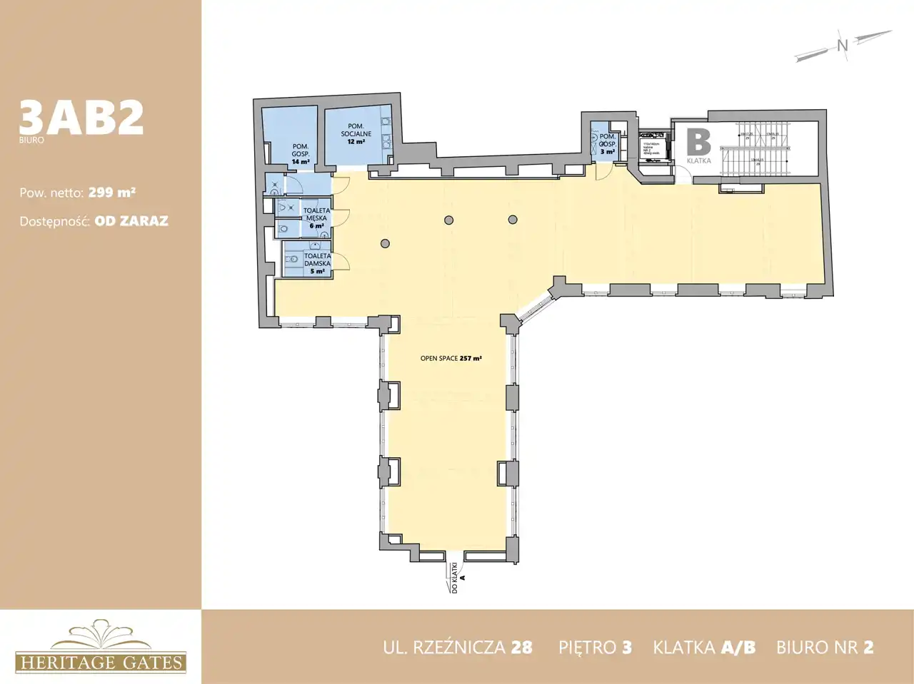Powierzchnia biura wynosi 322,92 m². Obowiązuje współczynnik powierzchni wspólnych na poziomie 8%. Biuro znajduje się na 3. piętrze. Lokal dostępny jest od zaraz. Standard wykończenia wnętrz odpowiada oczekiwaniom najbardziej wymagających najemców.