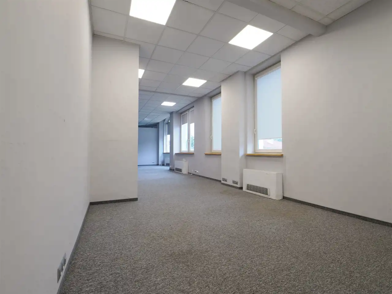 - Biura wyposażone w klimatyzację i ogrzewanie sterowane indywidualnie, specjalistyczne obiektowe wykładziny podłogowe- antyelektrostatyczne, trudnopalne z atestami, oświetlenie specjalistyczne dla pomieszczeń biurowych, okna wyciszone z żaluzjami pionowymi lub roletami.