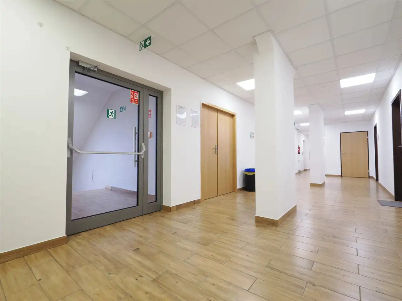 - ściany: korytarze murowane, działowe GK