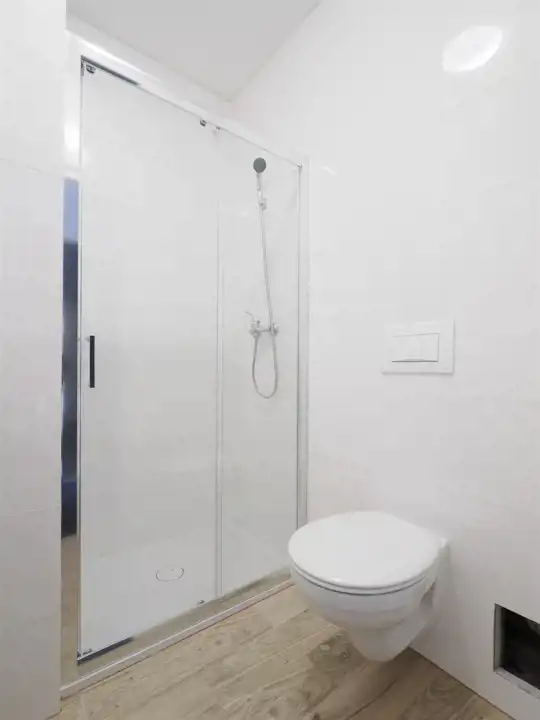 Pokój biurowo-usługowy z łazienką na wyłączność wyposażoną w kabinę prysznicową.