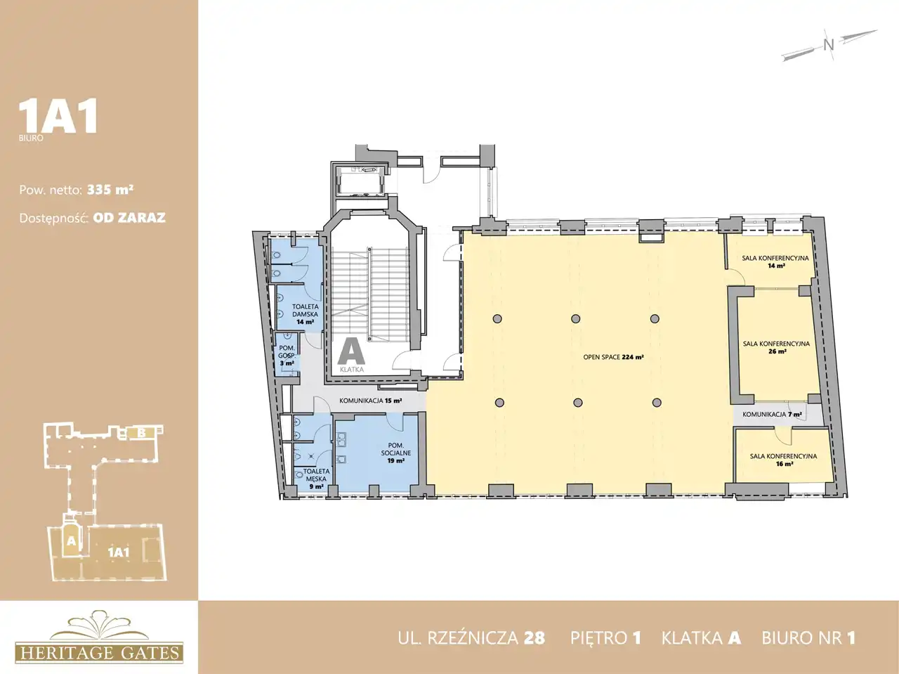 Oferujemy do wynajęcia nowoczesną i przestronną powierzchnię biurową o powierzchni 361,8 m², zlokalizowaną na 1. piętrze w odrestaurowanej kamienicy Heritage Gates, usytuowanej w samym centrum Wrocławia, przy ulicy Rzeźniczej. Budynek znajduje się zaledwie 100 metrów od wrocławskiego Rynku, co czyni go doskonałym miejscem dla każdej działalności biznesowej.