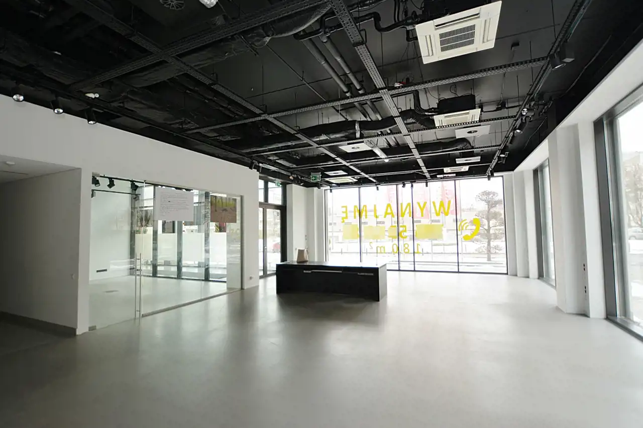Lokal o powierzchni 219,10 m2 podzielony na salę sprzedażowo- wystawienniczą, salę knferencyjną, kuchnię i zaplecze sanitarne.