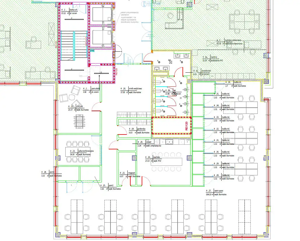 - biuro w zależności od aranżacji oferuje od 30 - 60 stanowisk pracy.
