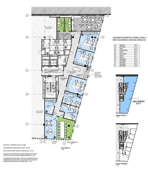 Elastyczność aranżacji: Dzięki przemyślanemu układowi przestrzeni, istnieje możliwość dostosowania biura do indywidualnych potrzeb najemcy.