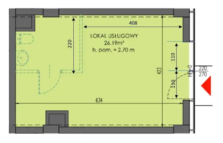lokal składa się z jednego pomieszczenia biurowo-usługowego oraz przestronnej toalety,