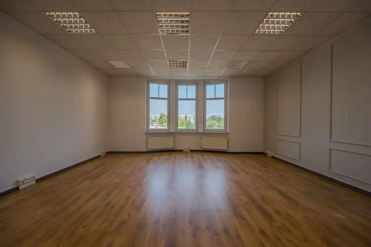 Do wynajęcia kameralne biuro/gabinet w nowoczesnym biurowcu w centralnej części Wrocławia. Powierzchnia 46,9 m2 to powierzchnia open space do własnego zagospodarowania. W części wspólnej piętra aneks kuchenny oraz toalety. Biurowiec z ochroną oraz dużym parkingiem naziemnym