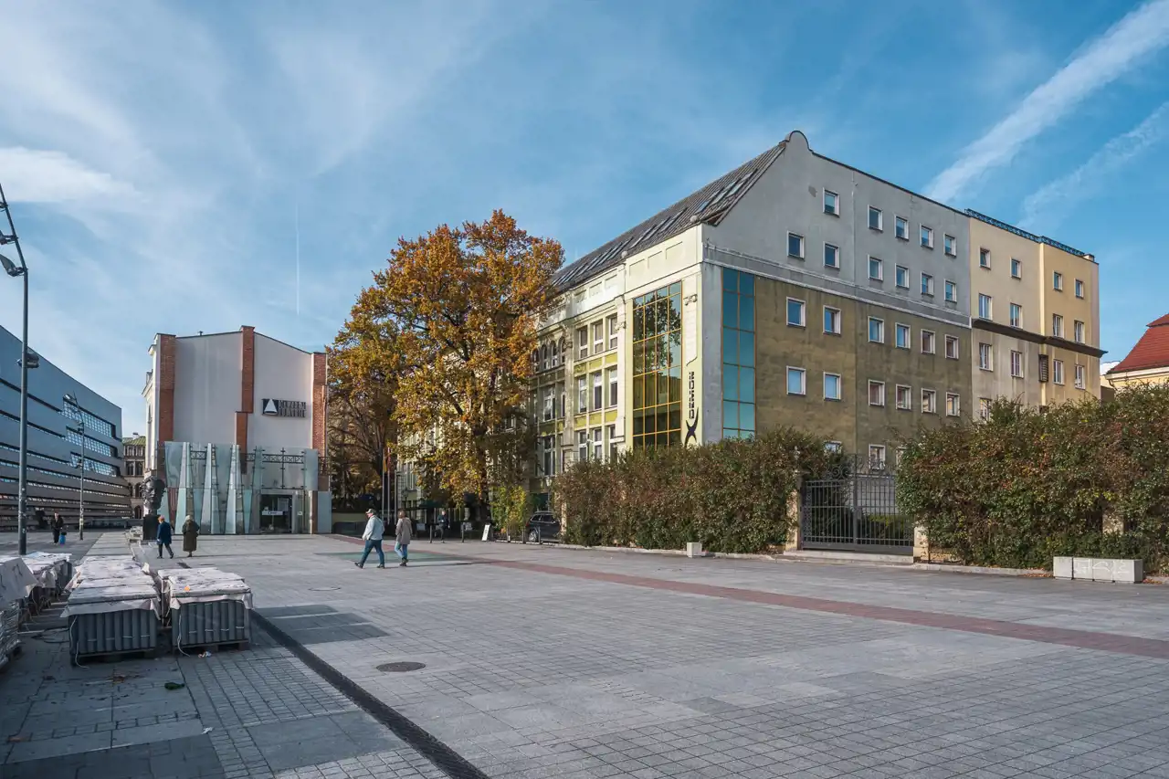 Budynek znajduje się w ścisłym centrum miasta, w bezpośrednim sąsiedztwie głównych arterii komunikacyjnych oraz przystanków tramwajowych i autobusowych, z dogodnym i szybkim dojazdem do dworca PKP.