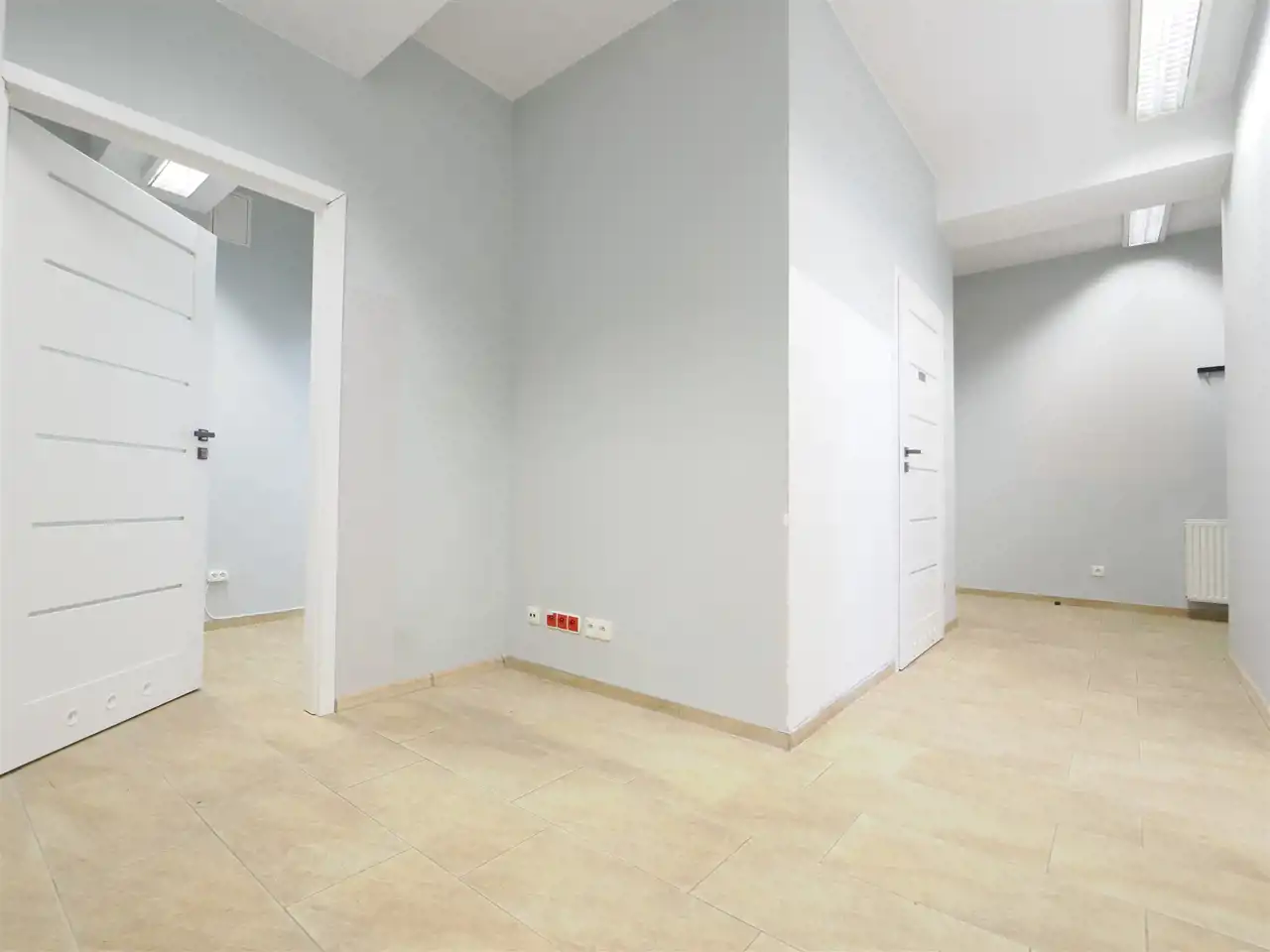 - oświetlenie jarzeniowe i rastrowe, okna PCV,