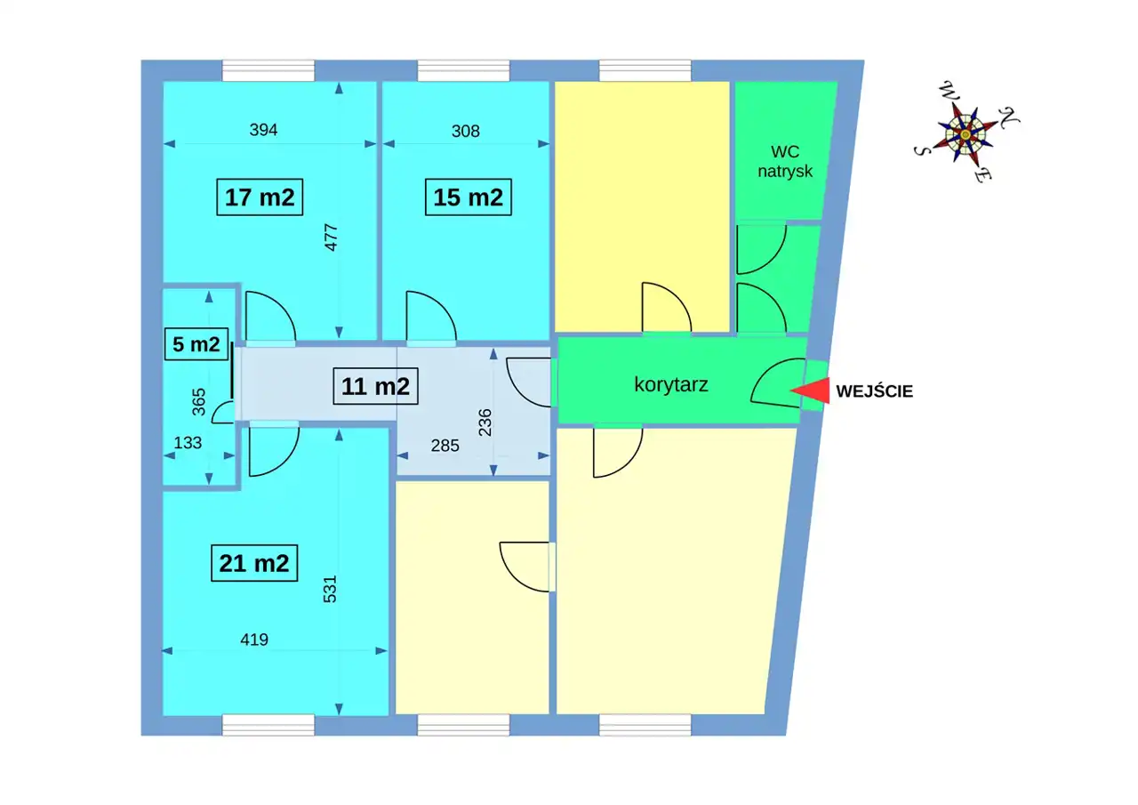 - 53 m2 pokoje (21 m2 + 17 m2 +15 m2)