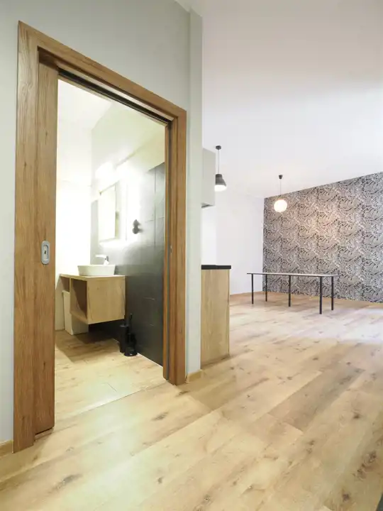 Okolica pl. Solny we Wrocławiu. Prezentuje lokal o powierzchni 68 m2 usytuowany na I kondygnacji kamienicy biurowej. Wymieniona powierzchnia składa się z przedsionka, powierzchni otwartej z aneksem kuchennym, gabinetu łazienki z kabina prysznicowa. Obiekt wyposażony w windę. Do podstawowego czynszu najmu należy doliczyć opłatę za media 15-20 zł/m2.