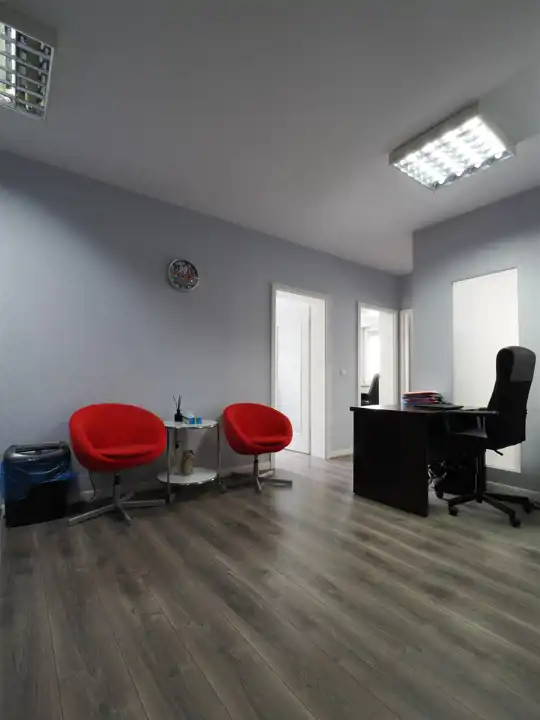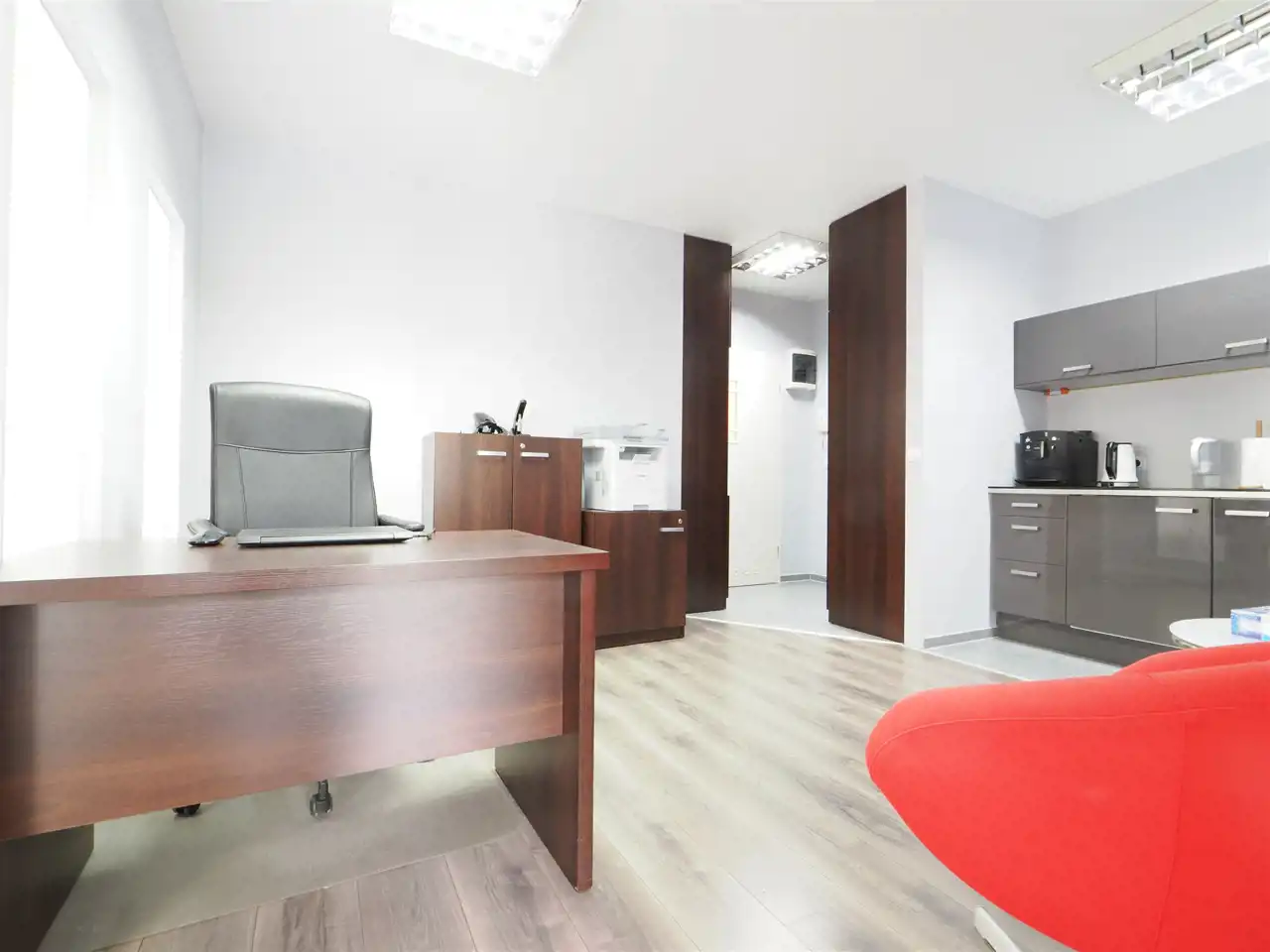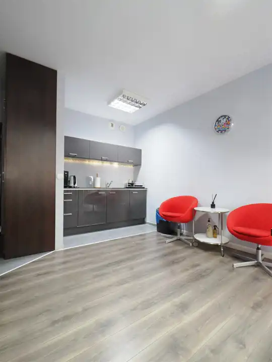 Sekretariat- hol z aneksem kuchennym , trzy niezależne pokoje ( 11m2, 12m2, 15m2), łazienka.