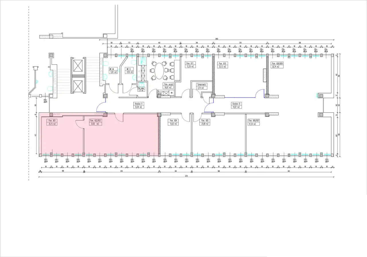 - Każdy samodzielny segment biurowy posiada dwie przestronne toalety, pomieszczenie socjalne i techniczne.