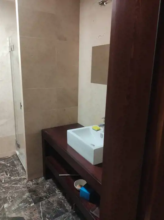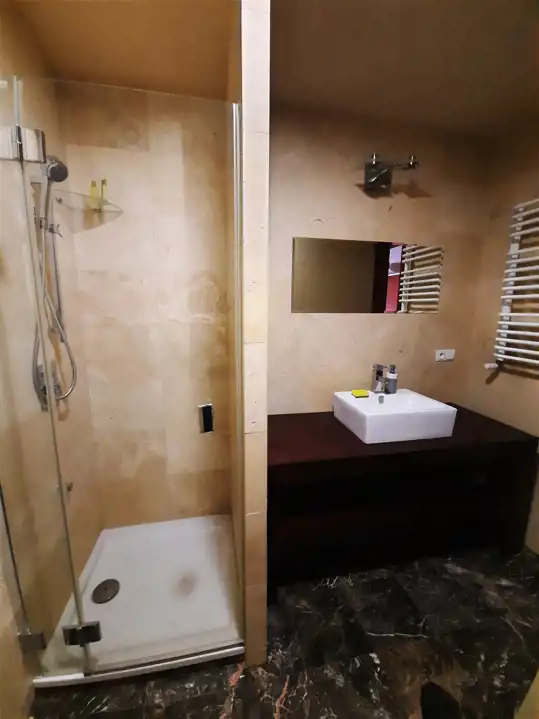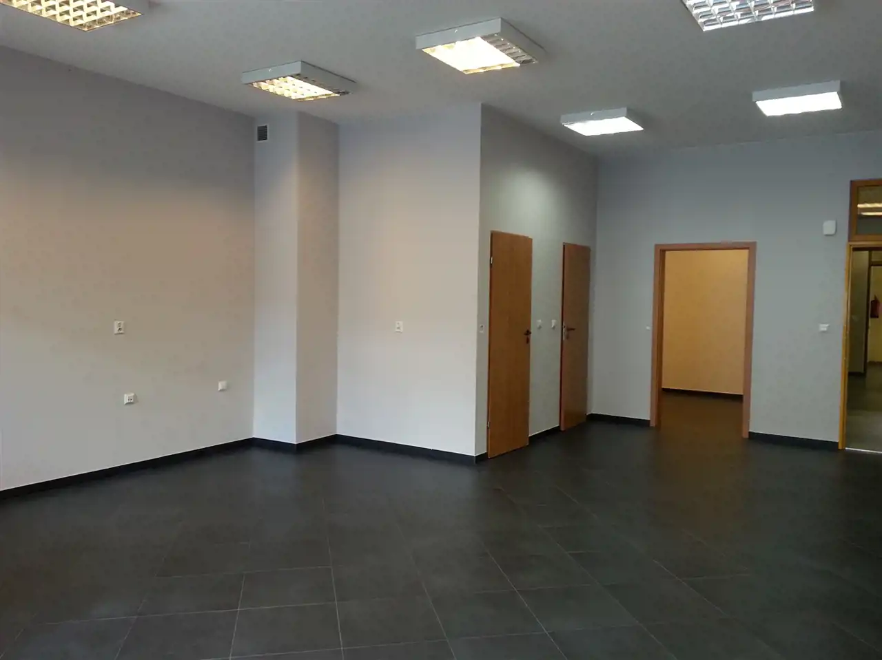 Lokal skład się z otwartej powierzchni ok 36m2 z aneksem kuchennym i wyjściem na balkon na podłodze są kafle. na ścianach gładź oraz odrębnego gabinetu ok 12m2 na podłodze są panele. na ścianach gładź, łazienki z kabiną prysznicową, umywalką i wc