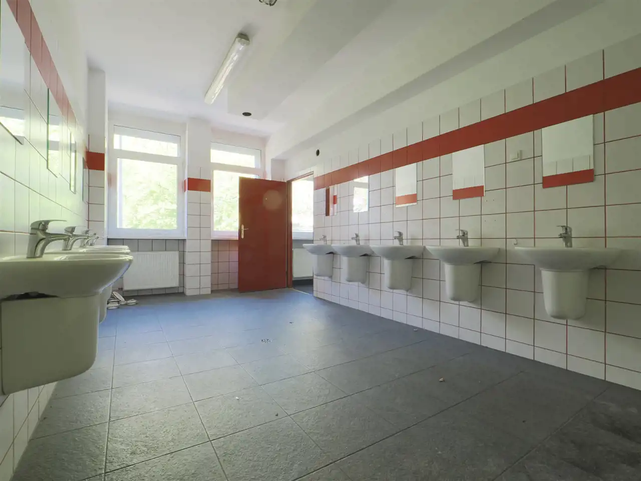 132 m2: sala główna (77m2), łazienka – wc, część prysznicowa, umywalnia (45 m2), korytarz (10 m2),