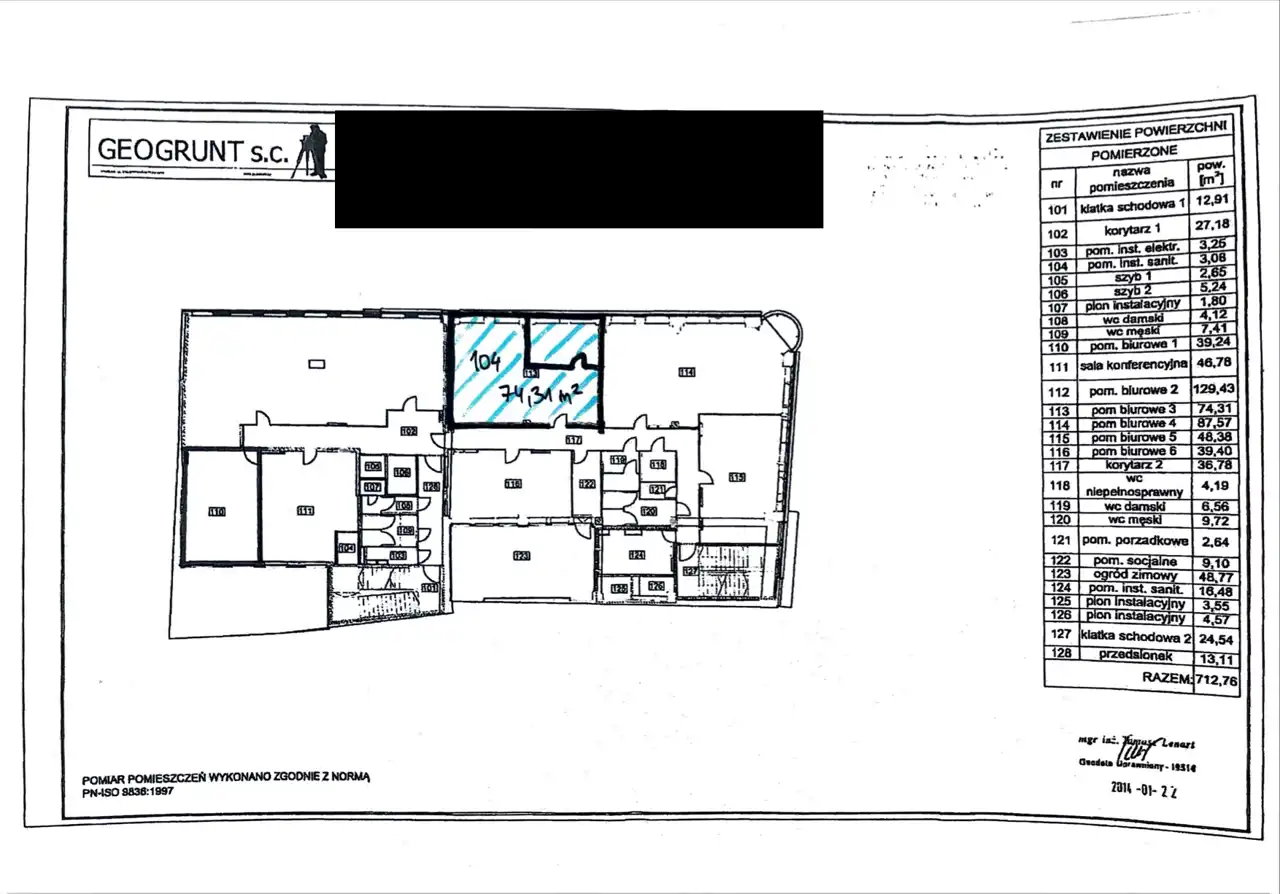 74,31 m² powierzchni biurowej