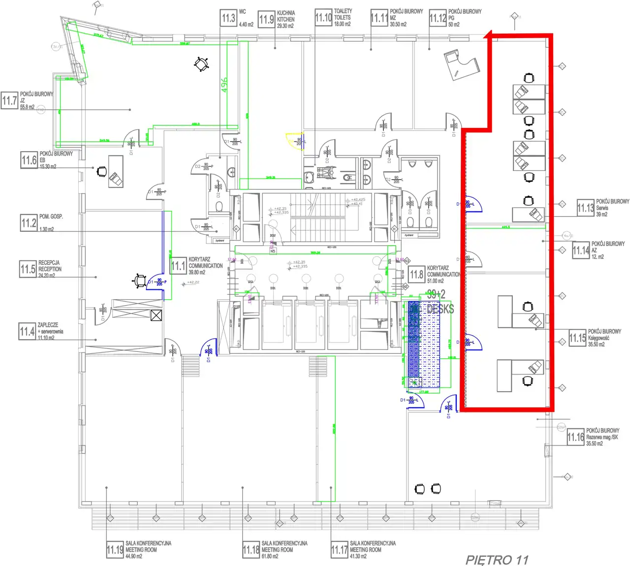 Czynsz najmu powierzchni biurowej – 60,00 PLN/ 1m2/m-c