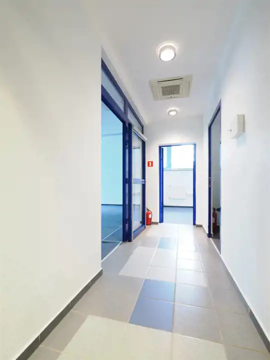 Na każdym piętrze biurowym znajduje się pomieszczenie socjalne, gospodarcze oraz węzeł sanitarny.