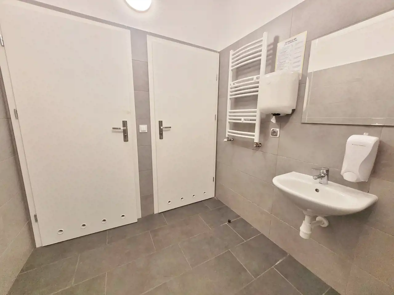 W skład lokalu wchodzi: duży open space + 1 pokój biurowy + wspólny z innym najemcą umeblowany aneks kuchenny, 4 WC.