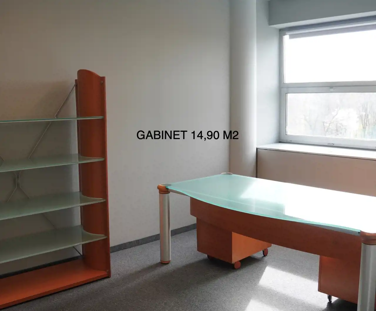 Gabinet: 14,90 m², idealny jako prywatne biuro lub sala spotkań;