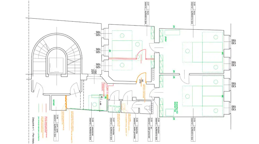 Sekretariat, powierzchnia open space, gabinet, salka konferencyjna, toaleta