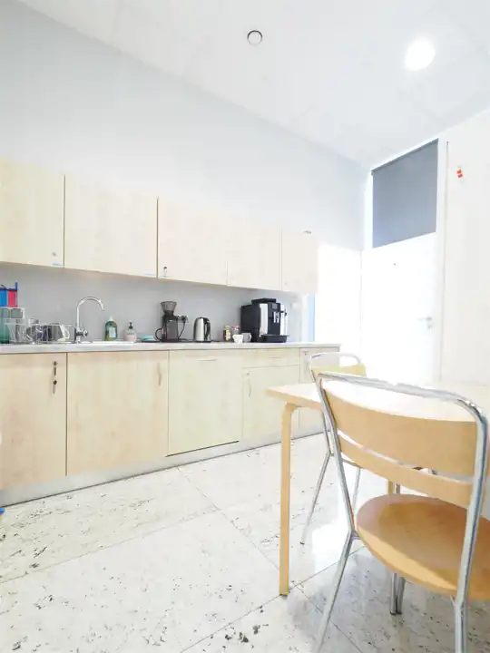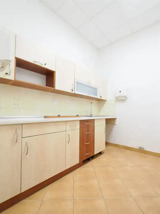 - na każdym piętrze węzeł sanitarny oraz pomieszczenia socjalno-kuchenne – podłogi gres, ściany glazura, armatura sanitarna standard Koło, baterie typu Roca, zestaw mebli kuchennych z miejscem na zmywarkę, lodówkę i kuchenkę mikrofalową.