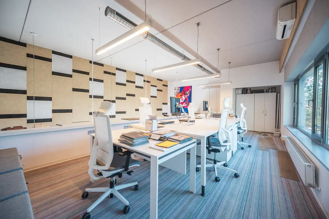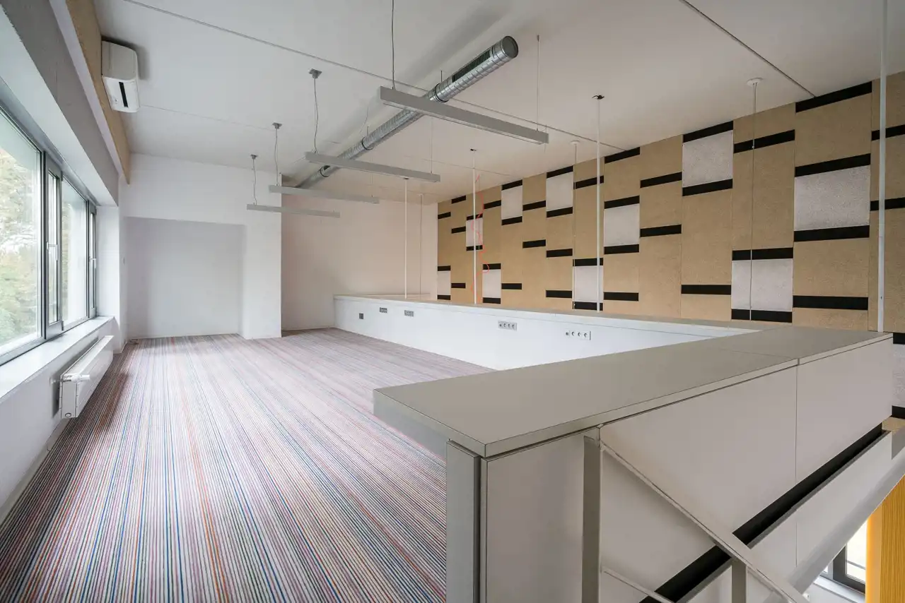 Ponadstandardowe wykończenie lokalu oraz wysokiej klasy materiały zapewnią przyszłym najemcom komfortowe warunki pracy. Lokal o powierzchni 96.5 m2 składa się z dwóch zamkniętych pomieszczeń biurowych oraz funkcjonalnej antresoli (około 8 stanowisk pracy), własnego aneksu kuchennego oraz toalety. Pomieszczenia doskonale doświetlone i wyciszone.