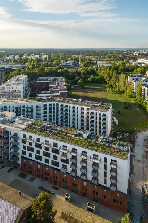 - Świetna lokalizacja blisko centrum, położenie na największej zielonej wyspie Wrocławia – Kępie Mieszczańskiej. Po drugiej strony Odry znajduje się Rynek i Nadodrze.