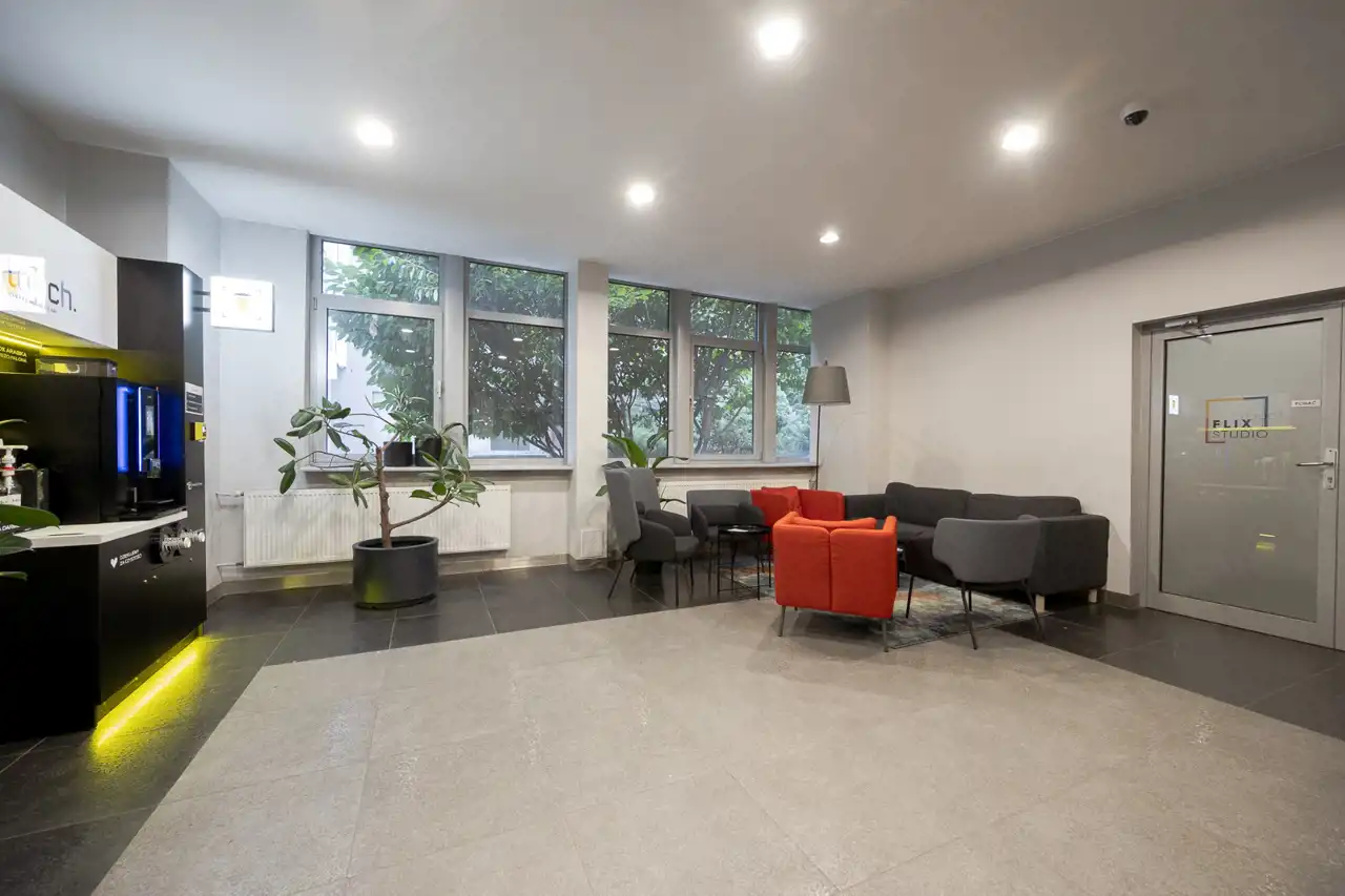 Na każdym piętrze biurowca komfortowa, duża kuchnia w pełni wyposażona.