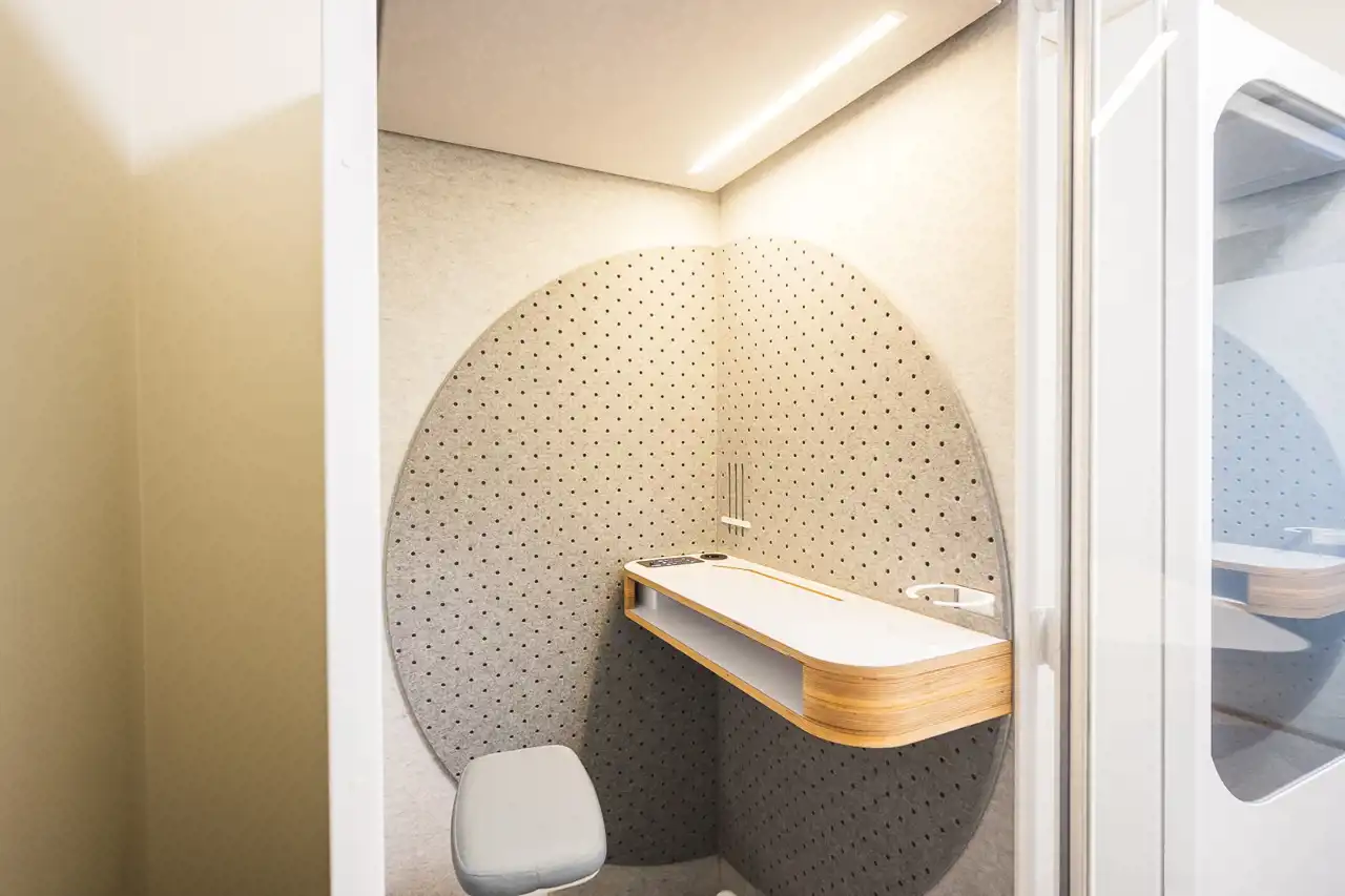 Lokal znajduje się w obiekcie o wysokim standardzie wykończeń oraz atrakcyjnych częściach wspólnych, które sprzyjają komfortowej i efektywnej pracy. Do dyspozycji Najemców pozostaje przestronny aneks kuchenny, strefa coworkingowa oraz quiet roomy, idealne do pracy w ciszy lub prowadzenia rozmów wymagających prywatności.