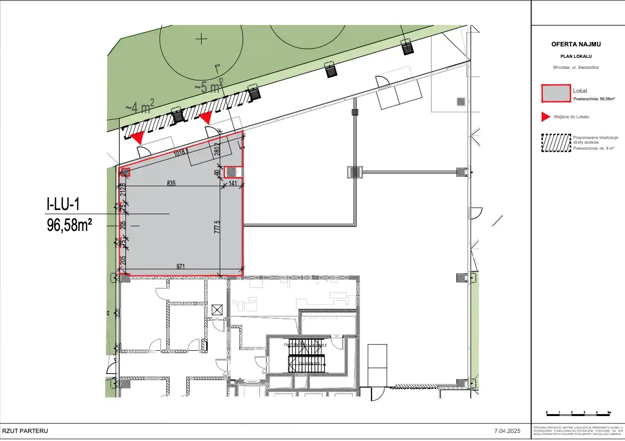 Do wynajęcia lokal usługowy o powierzchni użytkowej ok. 96,58 m² , zlokalizowany na parterze nowoczesnego biurowca klasy A, realizowanego w ramach prestiżowego projektu komercyjnego. Przestrzeń przygotowana technicznie pod działalność gastronomiczną zgodnie z aktualnymi wymogami sanitarnymi, instalacyjnymi i użytkowymi lub szeroko rozumiane usługi