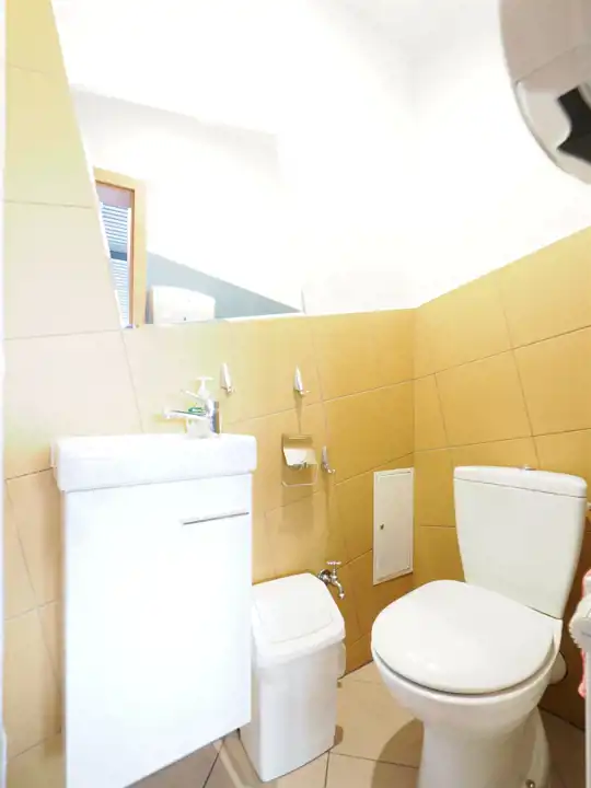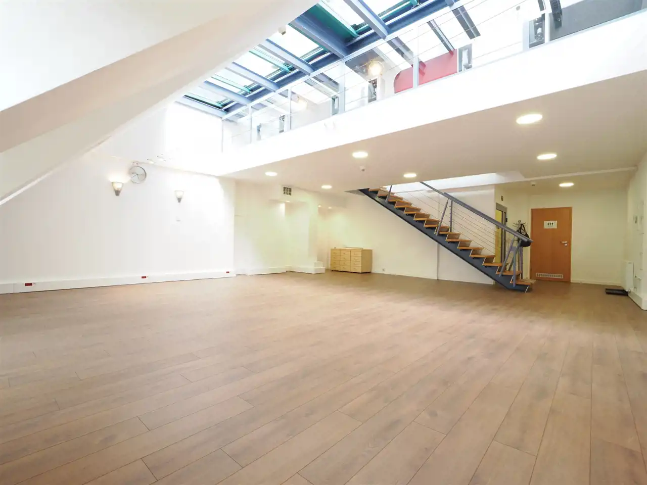 Lokal typu open space, toaleta, antresola, łazienka, socjal.