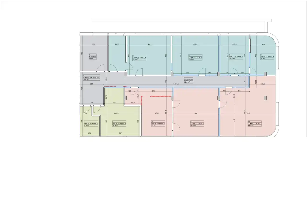 Dostępne lokale od 16m2 do 325m2 na jednej kondygnacji.