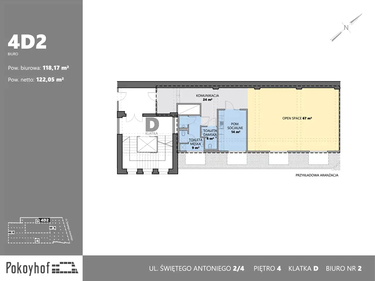 Nowoczesna przestrzeń biurowa w prestiżowej lokalizacji. Do wynajęcia wyjątkowe biuro o powierzchni 122,05 m², zlokalizowane w Pasażu Pokoyhof – w samym sercu wrocławskiego Starego Miasta. To doskonała propozycja dla firm poszukujących inspirującego miejsca do pracy z łatwym dostępem do komunikacji i miejskiej infrastruktury.