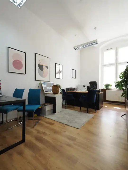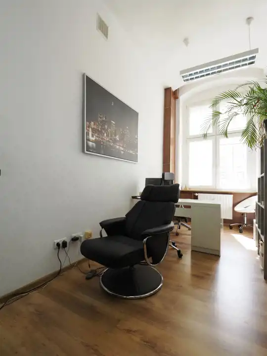 Hol, pięć gabinetów ,salka konferencyjna. aneks kuchenny, toaleta.