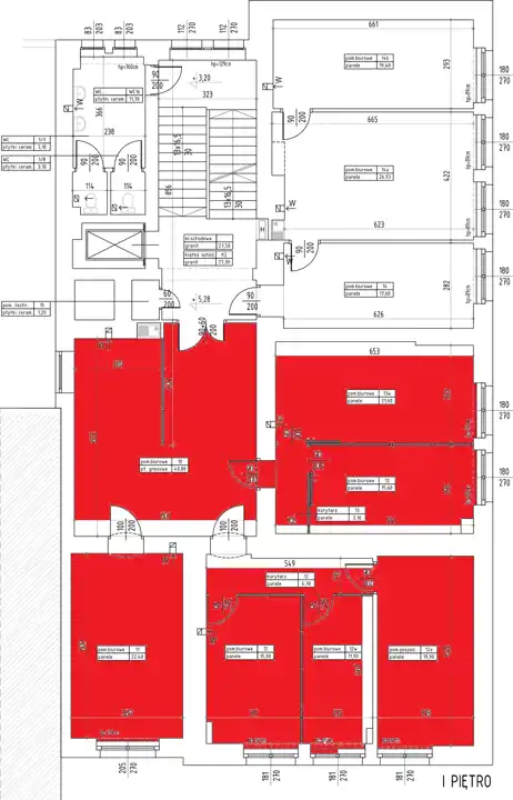 Prezentowana powierzchnia to lokal o powierzchni 165 m2 usytuowany na I p kamienicy biurowej.
