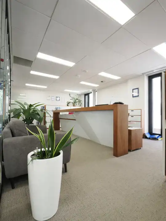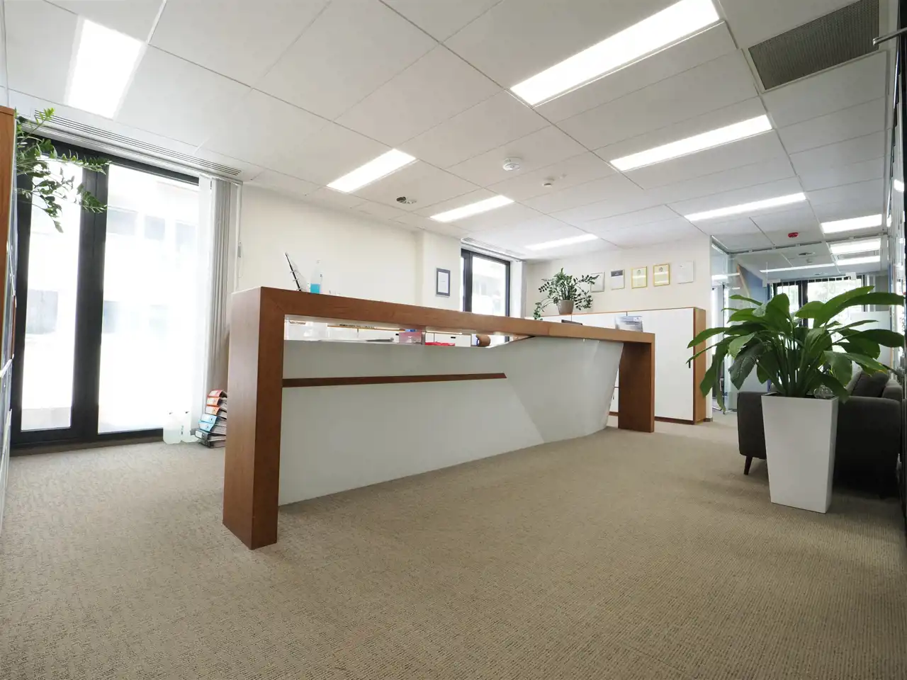 Reprezentatywny hol, ,2 gabinety,3 salki konferencyjne, aneks kuchenny.
