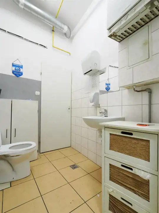 Sala główna, bar, kuchnia, pomieszczenia pomocnicze, toaleta dla gości, toaleta dla personelu.