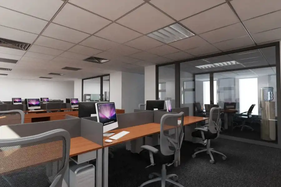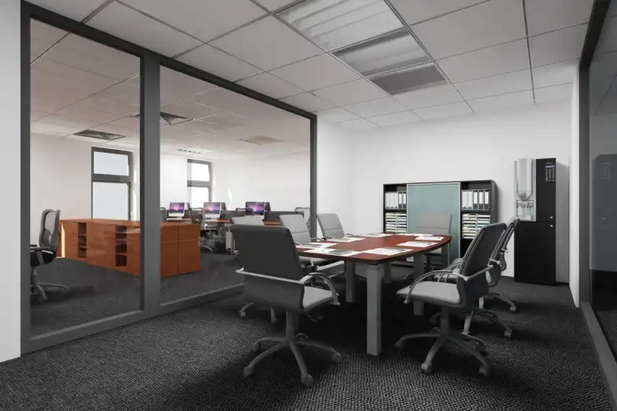 Lokal został podzielony na pomieszczenia biurowe, gabinety i sale konferencyjne,