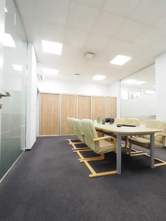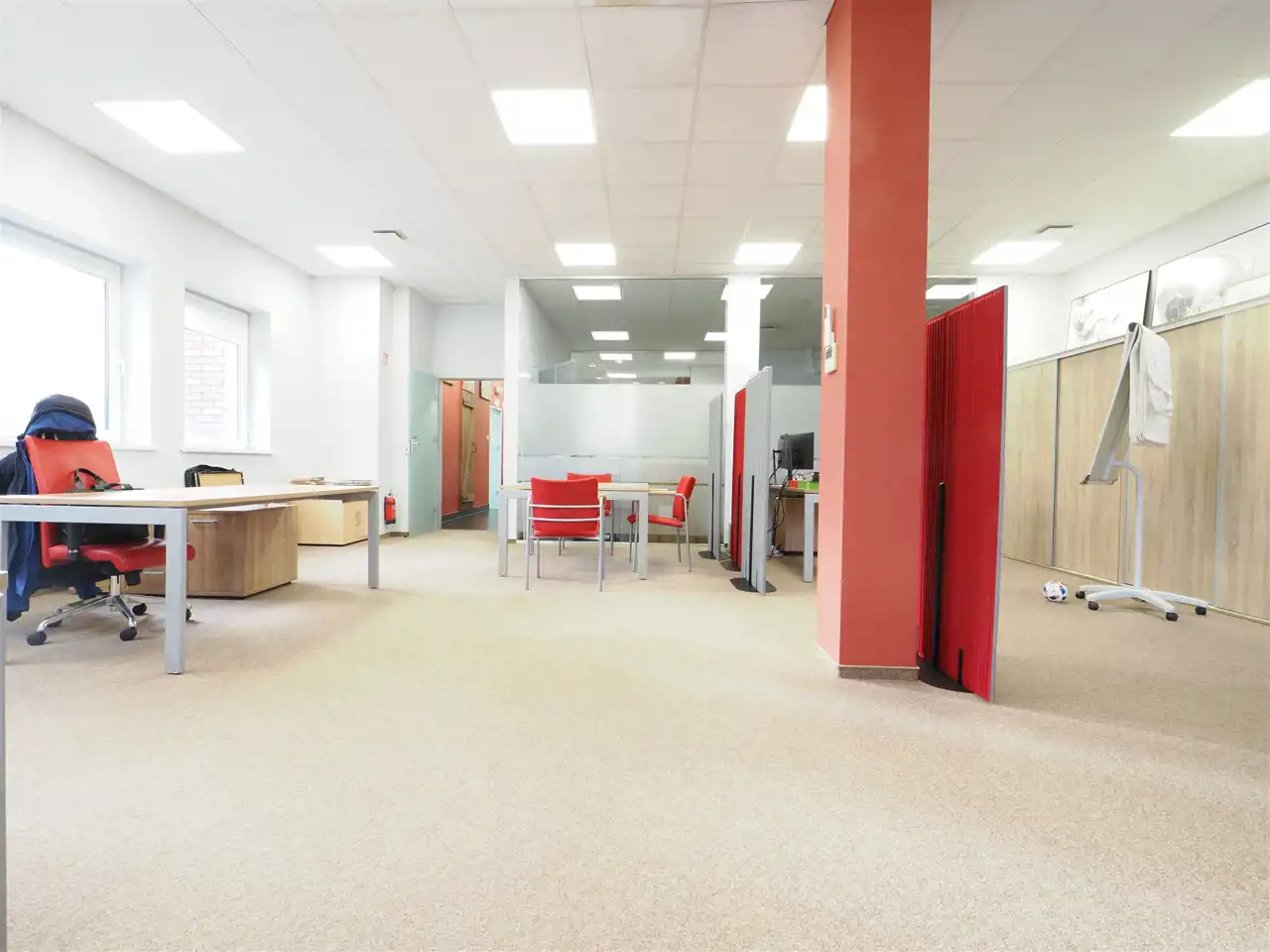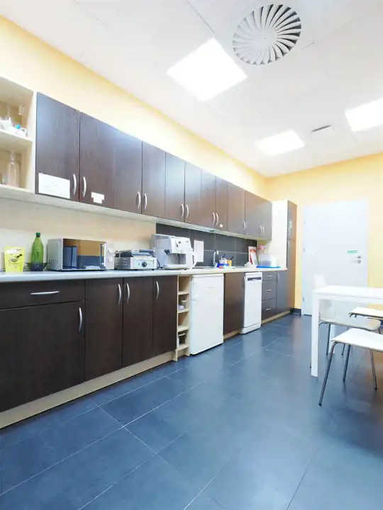 Moduł składa się z holu- sekretariatu , powierzchni typu open space, dużej sali konferencyjnej, gabinetu , aneksu kuchennego, toalety.