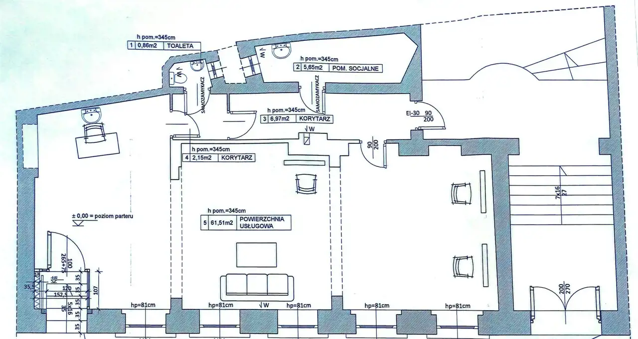Nieruchomość znajduje się w kamienicy, która została wybudowana ok 1900roku. Lokal o powierzchni 77,14m2, który znajduje się na parterze z wejściem bezpośrednio z ulicy.