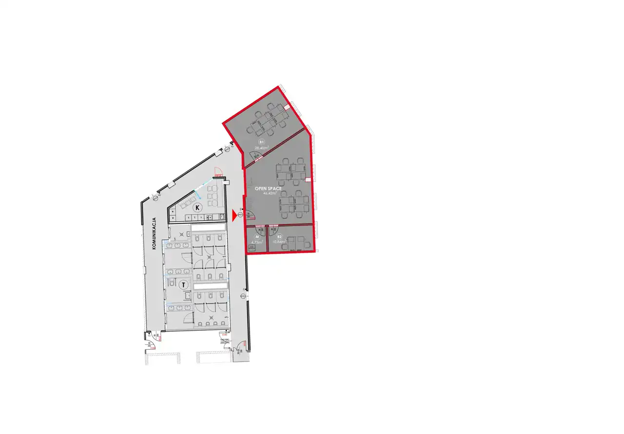 Open space, gabinet, salka konferencyjna, serwerownia.