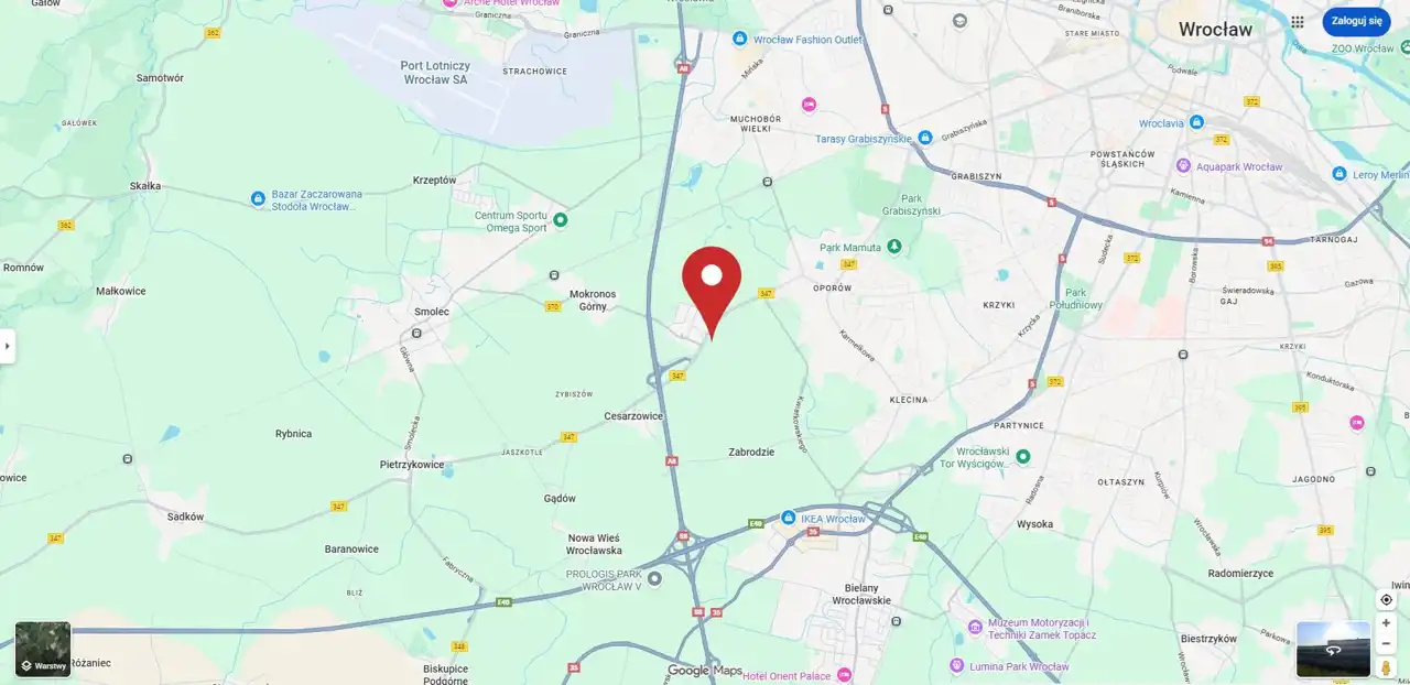 Biuro położone w bezpośrednim sąsiedztwie Wrocławia, z szybkim i wygodnym dojazdem do Autostradowej Obwodnicy Wrocławia (A8/S8). Lokalizacja zapewnia sprawną komunikację z centrum miasta, głównymi dzielnicami biznesowymi oraz autostradą A4.