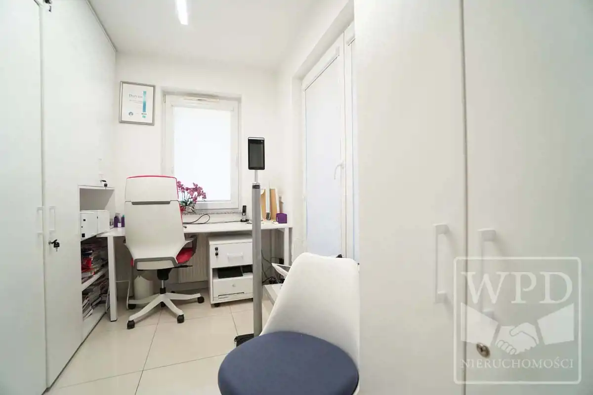 Wyposażenie: pełne wyposażenie lokalu ( 6 x gabinet, poczekalnia, łazienka, wc, pomieszczenie gospodarcze klimatyzacja, i wiele innych )