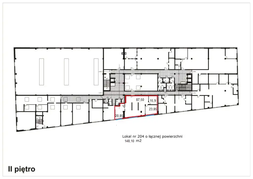 Nowoczesny obiekt. W większej części podporządkowany funkcji biurowej. Do wynajęcia powierzchnia na II p. o pow. ok. 148 m2. Kuchnia i łazienki w częściach wspólnych. Zapewniony system centralnej klimatyzacji. Okablowanie teletechniczne. Recepcja ogólnobudynkowa. Zagwarantowana ochrona obiektu. Miejsca postojowe abonamentowane.