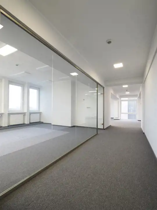 - Pomieszczenia biurowe wyłożone wykładziną dywanową