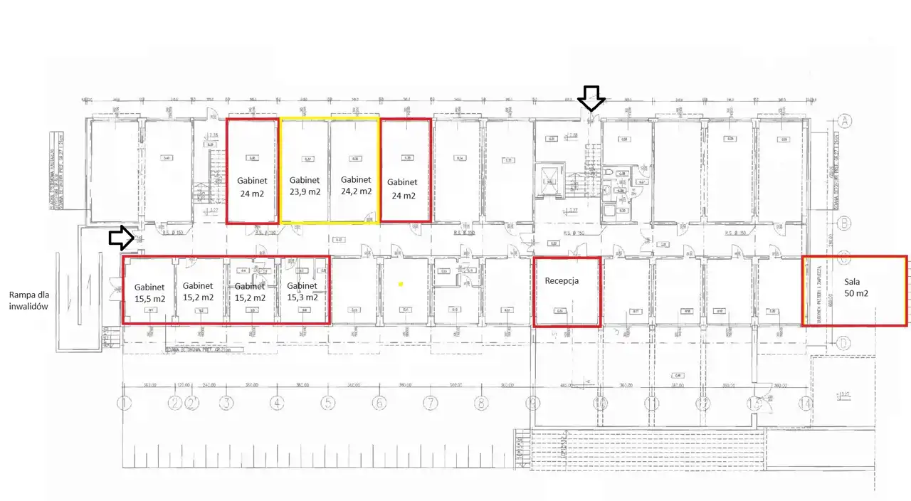 Powierzchnia typu open space 50 m2, 5 gabinetów, recepcja , łazienki.