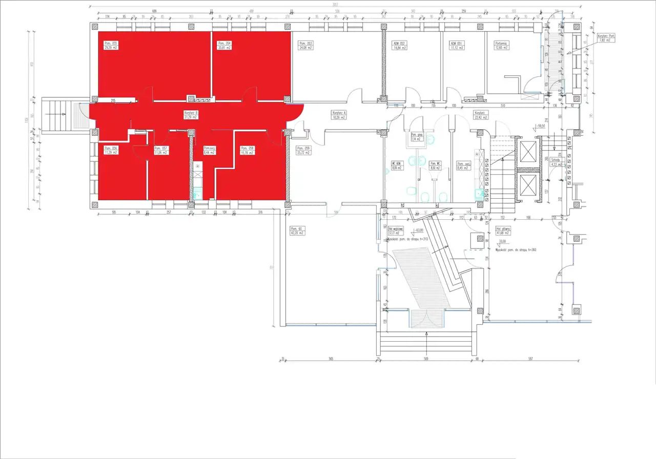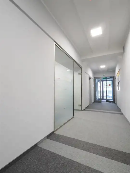 - Pomieszczenia biurowe wyłożone wykładziną dywanową